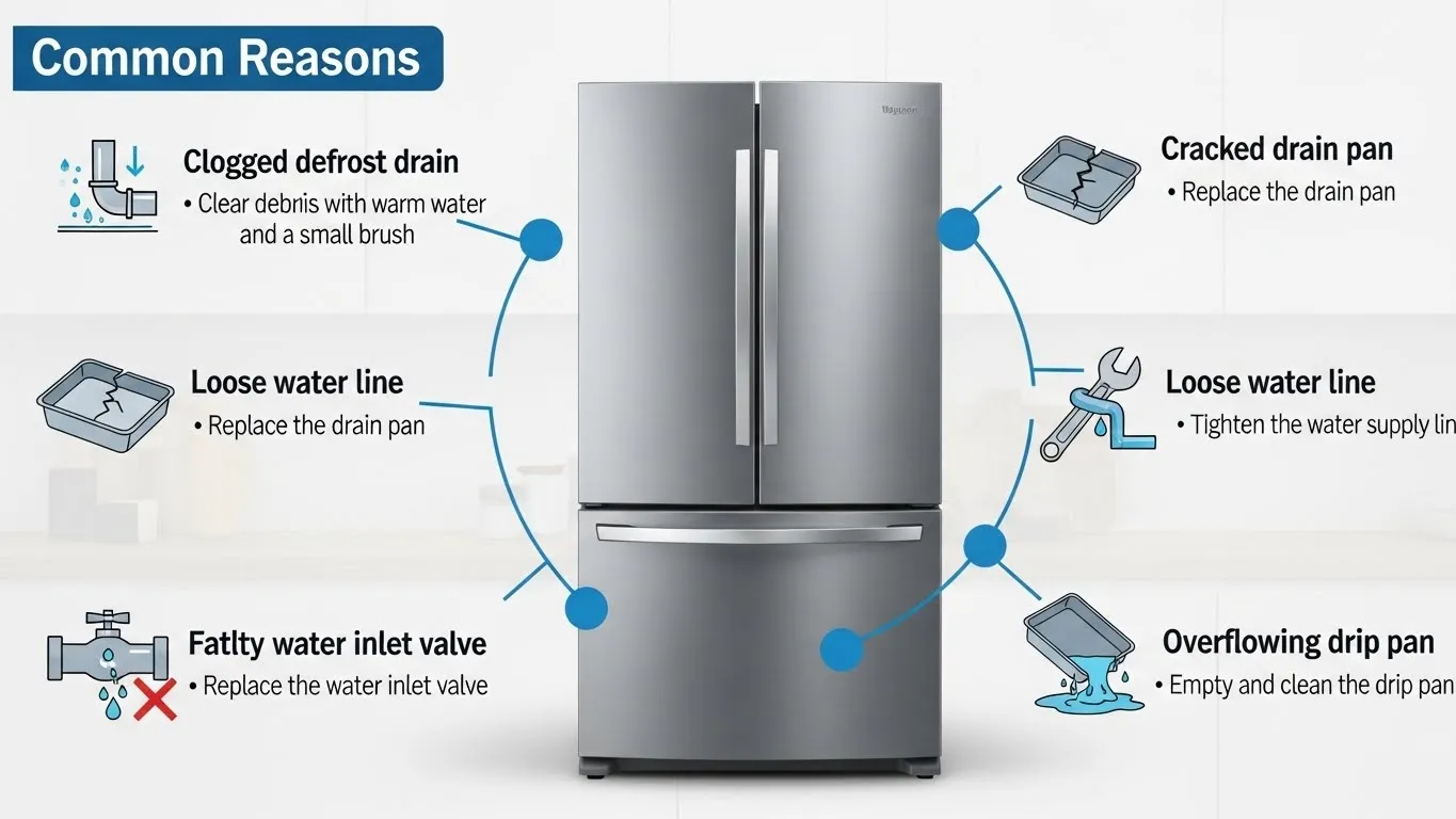 لماذا ثلاجتك تسرب الماء؟ 5 أسباب شائعة مع حلول فورية